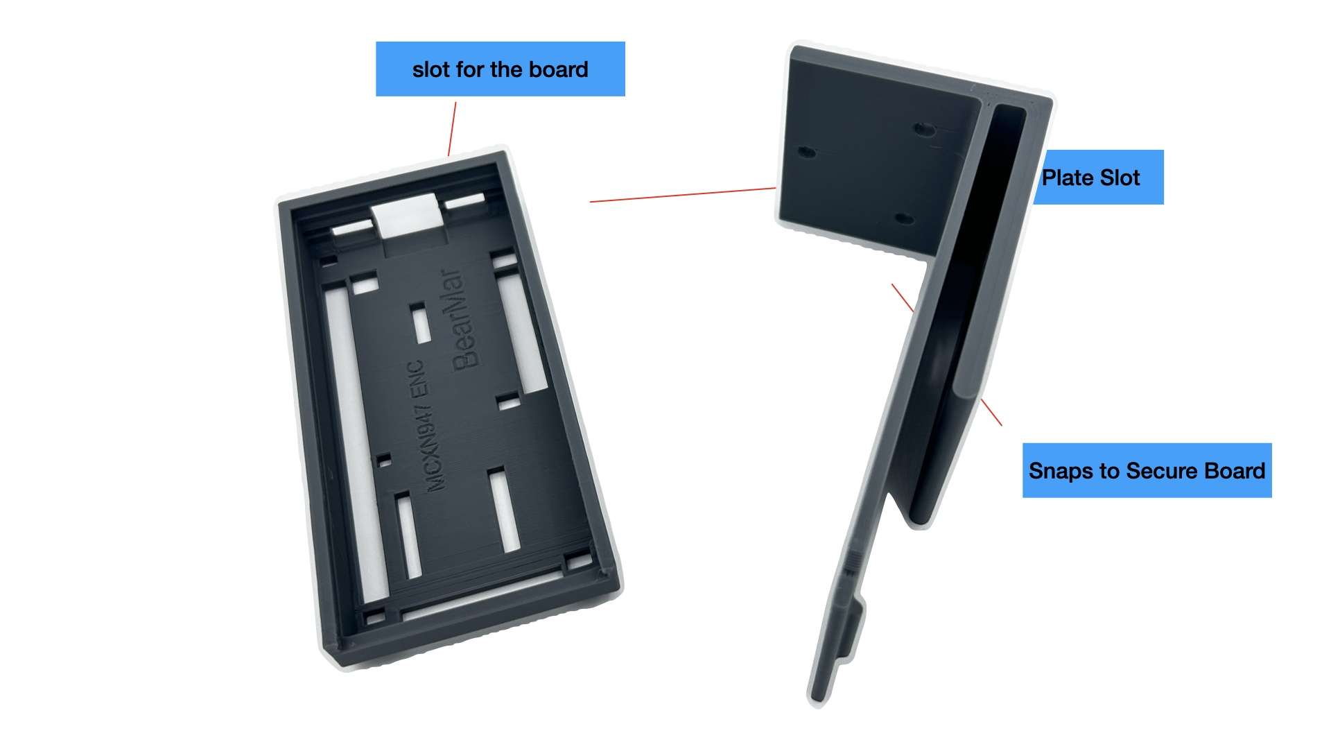 This FRDM-MCXN947 Case comes in two pieces. A top piece with cutouts for access to the FRDM-MCXN947 development board. Without OPENING the case, you can: