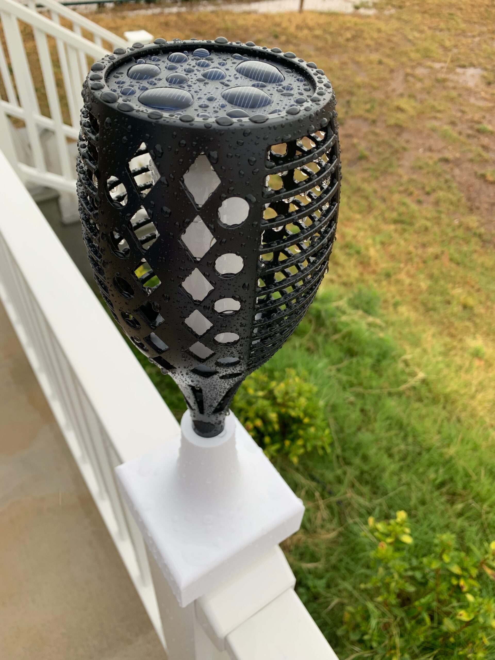 This Tomcare Flickering Solar Lights Mounting Bracket for 4×4 Vinyl Post Cap Replacement mounts the TomCare Flickering Solar Torches onto 4×4 Vinyl Posts as a 4×4 Vinyl Post Cap Replacement for Vinyl Deck Railing Systems. TomCare uses the word TORCH when most people say LIGHTS. I use both herein…